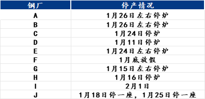 临近春节,川内10家短流程钢厂已有初步停产计划,多数集中于25号左右停炉,废钢正常采购。具体停产时间如下图所示: